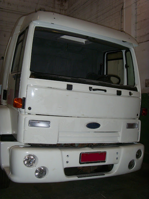Nesse Ford cargo sinistrado/batido fizemos uma reforma, recuperção da cabine nas laterais, teto, frente e interior, detalhe o lado do motorista foi mais danificado e infelizmente não aparece nas fotos.