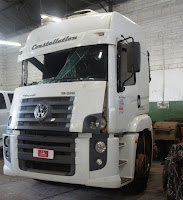 Esse Volks constellation, sinistrado, chegou em nossa oficina através, da Associação de Apoio ao Transporte de Cargas Minas e Goiás – ANATARAM para ser reformado o para choque. A batida foi muito forte que a porta foi arrancada e irrecuperável como vocês podem ver pelas fotos.